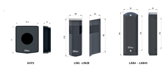 Ditec AXP2, LIN2 i LAB4 to urządzenia bezpieczeństwa wykorzystujące modulowaną podczerwień, zgodne z surowymi normami technicznymi określonymi w obowiązujących przepisach.