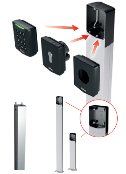 Słupki z odlewu aluminiowego o wysokości 500mm (AXC50) lub 1000mm (AXC100) do montażu na zewnątrz.