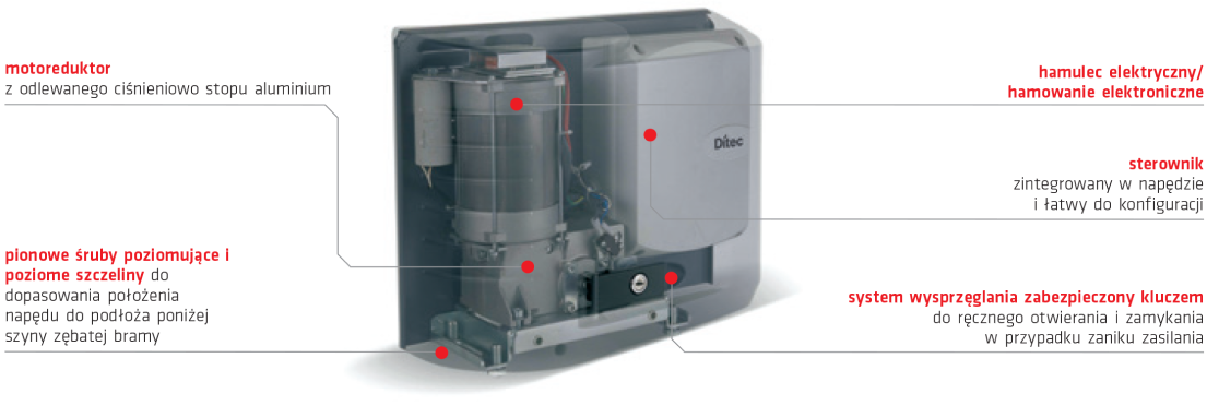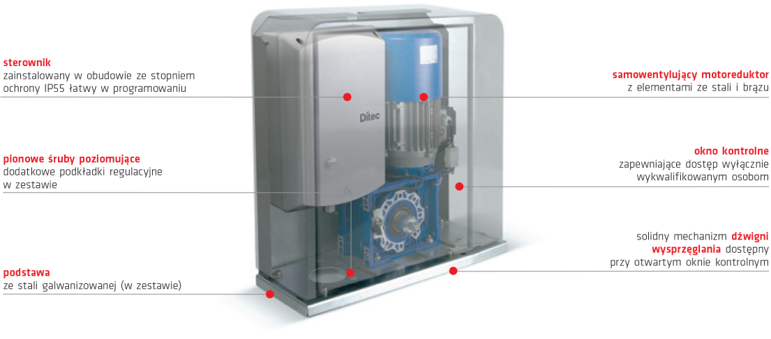 wysoka prędkość: 30 cm/s dla bram do 2000 kg i 25 cm/s dla bram do 3500 kg, w zgodzie z wszystkimi aktualnymi normami