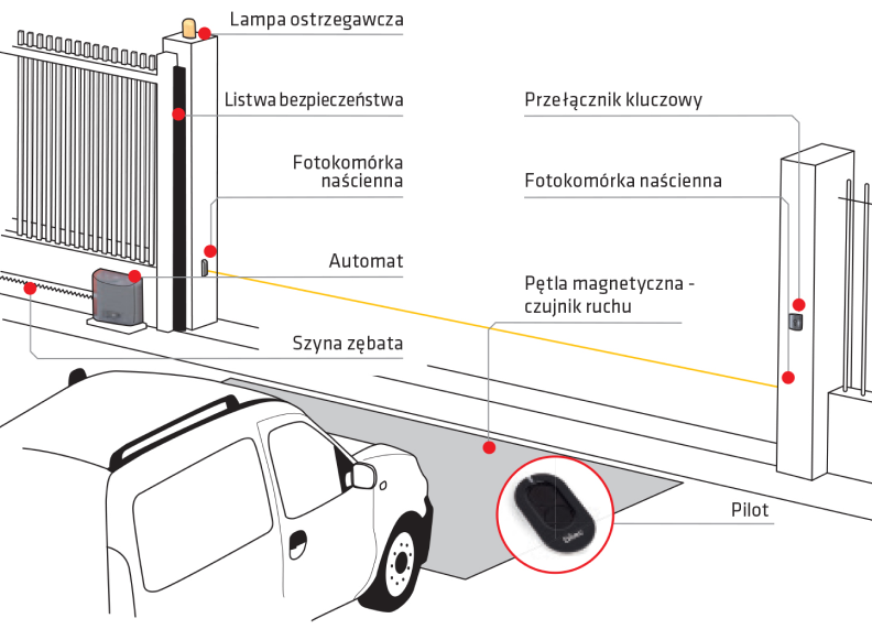 ODS – system wykrywania przeszkód (zatrzymuje lub zawraca bramę po wykryciu przeszkody) ■